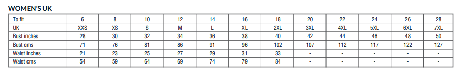 Bust (ins) 30 32 34 36 38 40 42 44 46 48 50