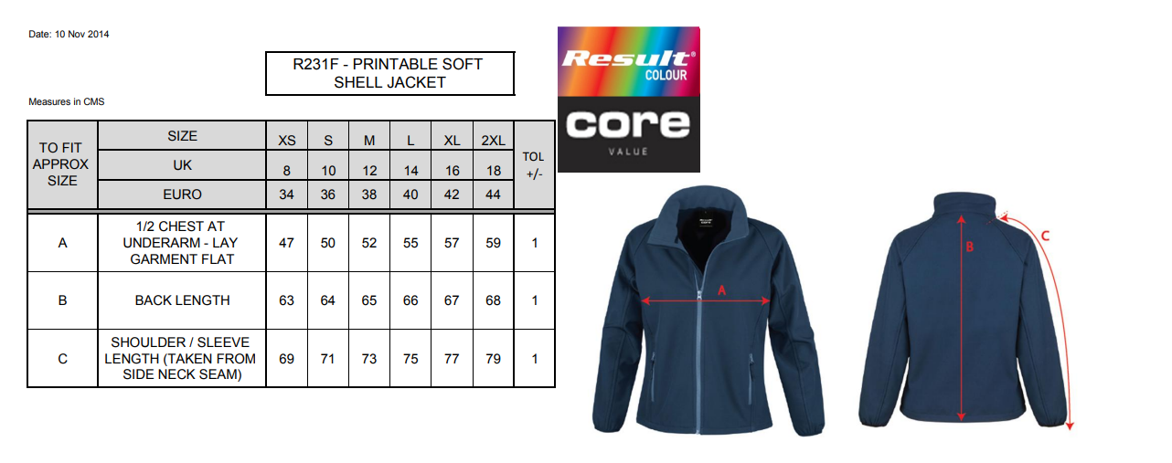 Decorative top stitch. Full front zip. Zip closing front pockets. Chin guard. Fitted waist. Elastane-free, crimped yarn stretch easy to print fabric. Ready to brand tearaway label. Microfleece inner provides extra warmth. Decorating methods: Embroidery, Screen print & Transfer print. Decorators access point: open
