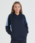 Unisex kids’ hoodie. Contrast sleeves and side panelling on contrast only. Ribbed cuffs and hem. Crossover hood neck at centre front. Zipped welt pocket in front panel side seam. Three-piece hood. Offered in contrast and solid colours. Tear-out label. Amfori BSCI certified.