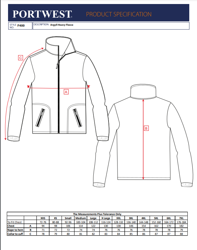 Shell Fabric : 100% Polyester, Anti-Pill finish Fleece 400g