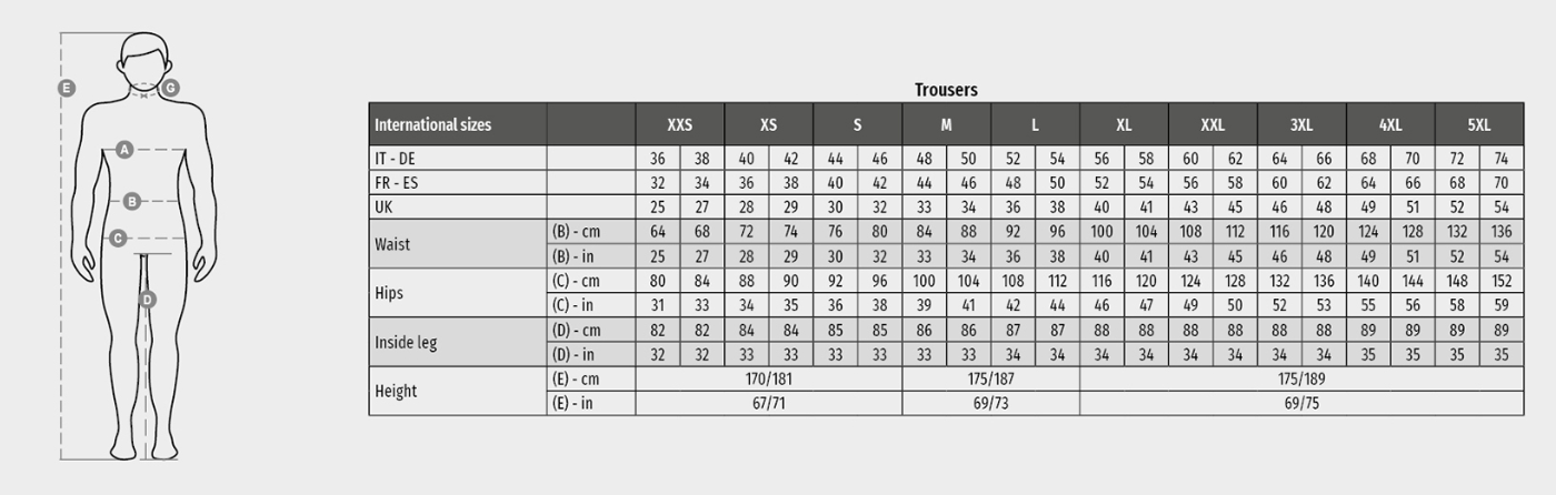 Men’s high visibility, two-tone all-season trousers with reflective stripes, side elastic and waist belt loops. Zip fastening with plastic button, two classic front pockets, one LOCK SYSTEM side pocket, a tape measure pocket, two back pockets, one open and one with flap and Velcro. Contrasting stitching, triple seam crotch and inner leg.