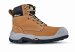 Safety shoes of protection class S3 HRO HI SRC CI with soft water repellent nubuck leather upper and polyurethane toe cap.
