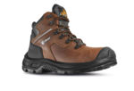 High-cut and robust work shoes with upper in water repellent, soft and resistant pull-up leather.