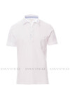 Men’s short-sleeved polo shirt with 4, matching, mother-of-pearl effect buttons, shirt-style pique collar, pocket and light blue poplin inserts on the inside collar, opening and side vents, transfer label, inner neck tape.