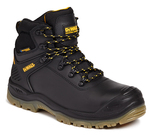Full grain black leather upper. Waterproof and breathable Samsung membrane inner lining. Padded tongue and collar for added comfort. Steel toe cap and steel midsole protection. PU comfort insole. TPU dual density outsole. Anti-scuff toe guard. TPU heel support system. A high quality waterproof safety boot from DEWALT.