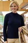 60% Cotton, 40% Acrylic 12 gauge knit. Turtleneck jumper, ribbed neck, tubular cuff and hem, contrast inner neck strip.